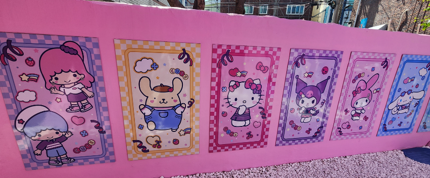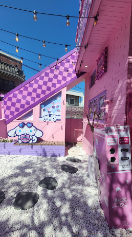 기프트숍에는 다양한 산리오 캐릭터 굿즈들이 가득했어요. 헬로 키티, 마이 멜로디, 쿠로미 등 딸이 좋아하는 캐릭터들이 한 자리에 모여 있었죠. 기프트숍 내부에는 여러 포토존도 마련되어 있어서 딸은 이곳저곳에서 사진 찍느라 정신이 없었습니다. 특히 귀여운 캐릭터들 앞에서 환하게 웃는 딸을 보니 저도 덩달아 행복해졌어요.