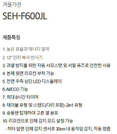 - "작은 방에서 사용하기 딱 좋아요. 따뜻함도 빠르게 느껴집니다."