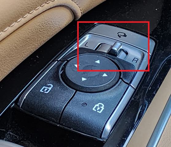 아래 사진과 같이 사이드 미러 조작 기능을 활용하면 후방 주차가 훨씬 쉬워집니다.