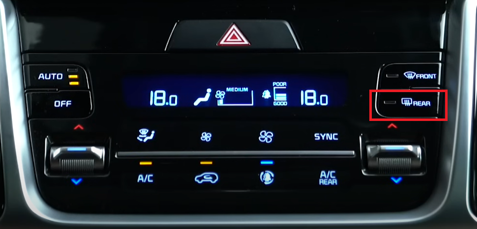 REAR 버튼을 누르면 뒷 유리 열선뿐만 아니라 사이드미러 열선도 함께 켜져 김서림을 없애줍니다.