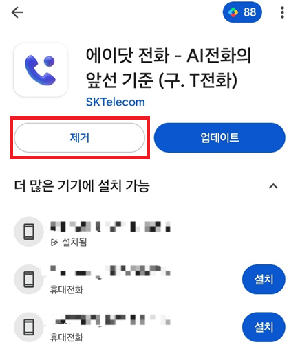 에이닷 전화 앱을 삭제하는 방법은 다음 세 가지가 있습니다: