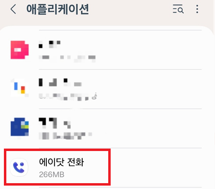 3) 에이닷 전화를 찾아 클릭한 후, '삭제' 버튼을 누릅니다.