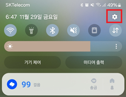 1) 설정 메뉴를 엽니다.