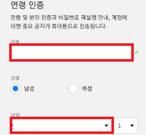 - 다음 정보 입력 : 개인 정보를 입력해야 하며, 잘못된 정보를 입력하면 인증에 실패할 수 있습니다.
