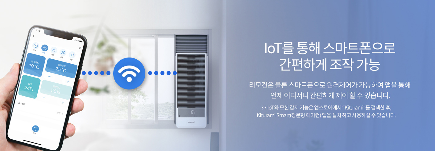 리모컨뿐만 아니라 스마트폰을 통해서도 원격 제어가 가능합니다. 언제 어디서나 간편하게 에어컨을 조절할 수 있습니다.