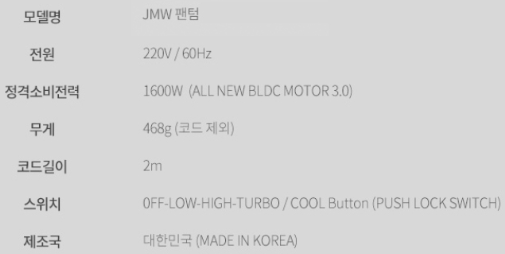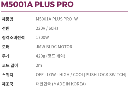 ■ 제이엠더블유 팬텀 헤어 드라이기 MS6001A 1600W